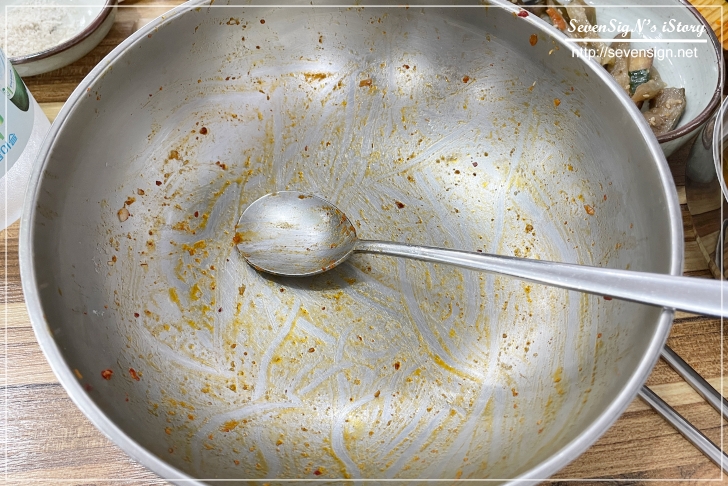 하다가 ㅋㅋ 눈에 띈 참기름도 듬뿍 넣어주고, 고추장도 좀 넣어주고 비벼주었습니다.