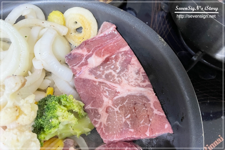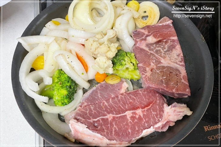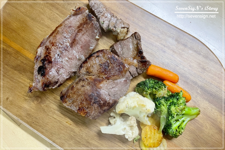 스테이크 패키지 안에는 채소 가니시도 포함되어 있어서 야채와 함께 즐길 수 있는데요,