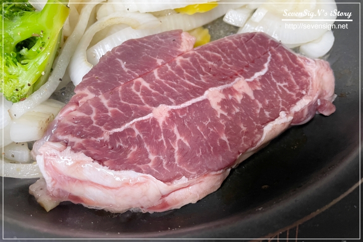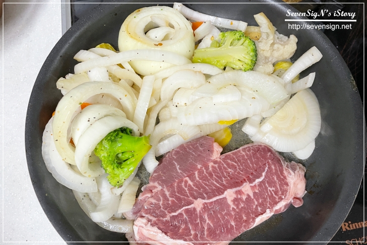 야채가 먼저 구워지는 사이 스테이크도 올려봅니다~