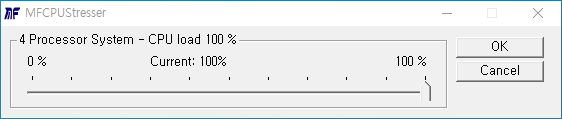 | 이번에도 역시 MFCPUStresser로 CPU 로드율을 올렸습니다.