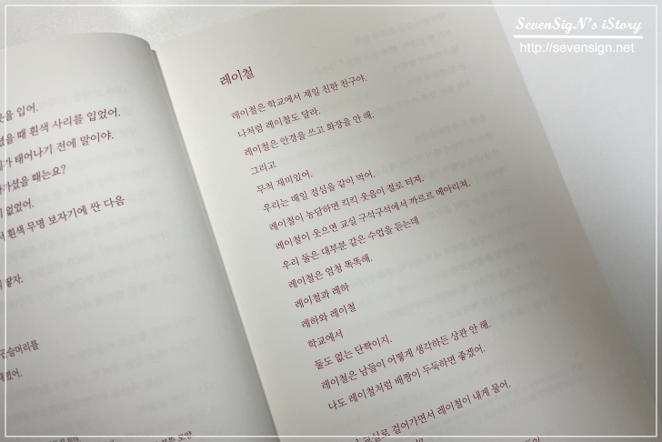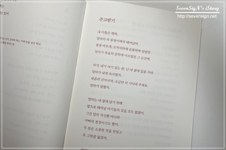 운문소설이라 책장넘기기 어렵지 않지만, 한장 한장 넘기게되며 느끼게되는 레하의 감정선들은