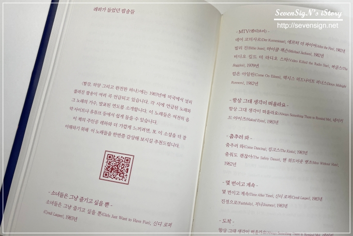 그리고 책 마지막 부분에는 레하가 들었던 팝송들의 유튜브 QR도 제공하고 있어서
