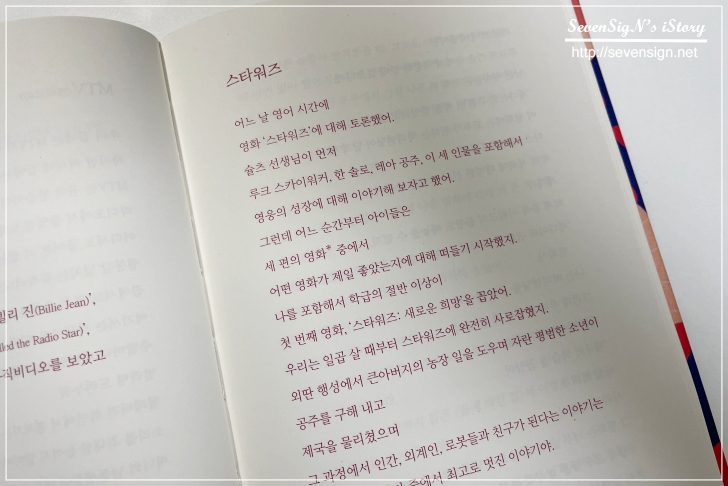 하얀색 종이위의 빨간색 글씨, 그렇게 완성된 하나의 이야기... 이런 부분도 있을 수 있고,