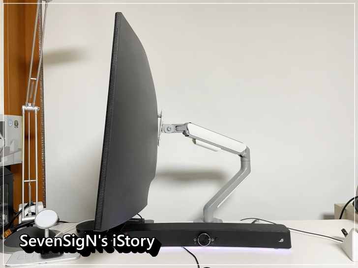 | 순정 스탠드와 결합해 그대로 사용해도 디자인이 뭐 그닥 빠지진 않습니다만, 확실히 높이가 낮아서 책상에 앉아 거북목 증상이 지속될 수도 있습니다. 그리고 공간 활용에 제약이 좀 되기도 하고요. 한성모니터가 나쁘다는게 아니라 ㅋ 스탠드로 사용하는 모니터가 그렇다는 이야기입니다 ㅎ