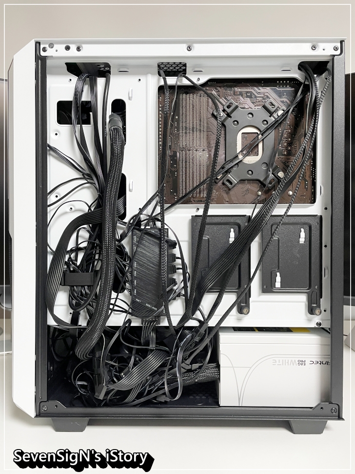 | 도어형 측면 패널이라 여름에 열어둬도 좋구, 저같은 경우는 SATA 케이블과 전원을 이쪽으로 빼두고 HDD 등을 연결할 일이 있을 때 활용해서 도어형 패널을 선호하죠.