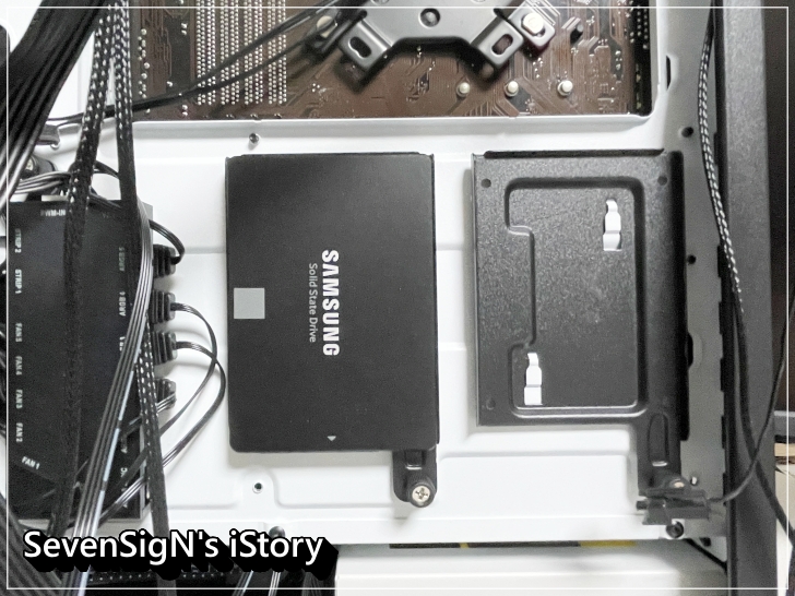 | 갤럭시 갤라즈 GALAX EX-01 메쉬 강화유리 케이스가 좋은 이유는 바로 이 뒷쪽에 있다고 해도 과언이 아닌데요, 안정적으로 2.5인치 SSD를 장착할 수 있는 SSD베이가 2개 있고, ARGB 통합 팬 컨트롤러가 보입니다.