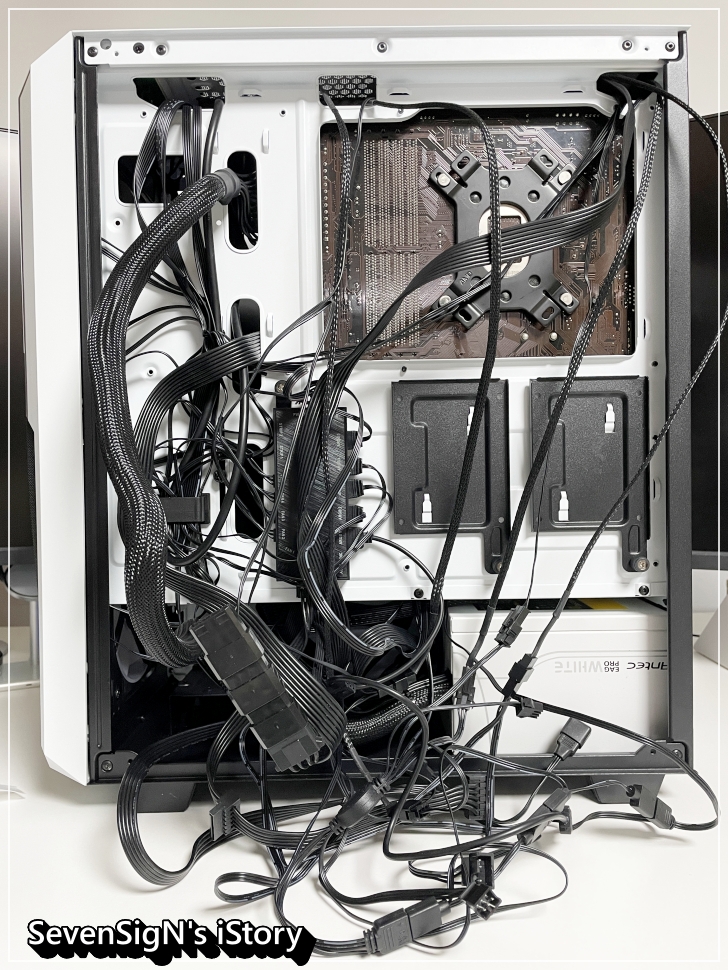 | 도어형 측면 패널이라 여름에 열어둬도 좋구, 저같은 경우는 SATA 케이블과 전원을 이쪽으로 빼두고 HDD 등을 연결할 일이 있을 때 활용해서 도어형 패널을 선호하죠.