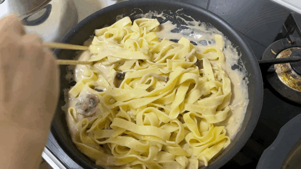 피자가 완성되기를 기다리며 고메 트러플 크림 파스타를 조리하기로 했는데요,