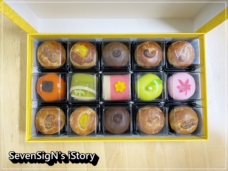 화과자 5개와 만주 10개로 구성된 알찬 세트죠.