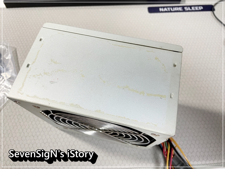 | 다음은 파워... Great Wall 파원인데 연식 따위도 모르겠고 어쨋든 아직 잘 돌아가는데요 ㅋ 이게 외관이 상태가 좀 거시기 합니다. COX i2 브릿지 강화유리 블랙 케이스가 파워서플라이가 보이는 오픈 구조라 좀 거슬리겠더라구요.
