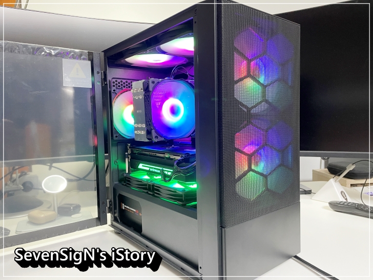 - 120mm ARGB 쿨링 팬을 통해 AUTO RGB 감성과 5v 3Pin 연결시 메인보드 연동 RGB 감상이 가능