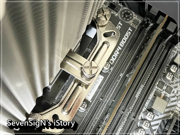 | 쿨러 역시 올려주고 손나사로 돌려서 장착해주면 됩니다. 쿨러 교체하는 드라이버도 사용하지 않고, 다른 부품들을 제거하지도 않고 장착할 수 있었습니다. 그만 장착 난이도가 좋은 쿨러입니다.