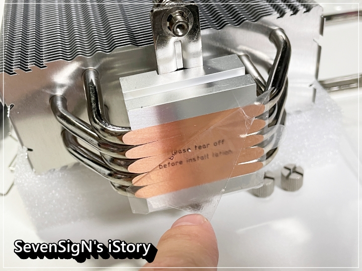| 처음에 이야기한대로 알루미늄 베이스의 보호비닐을 제거합니다. 앱코 타이폰 120X5 ARGB의 히트파이프는 따닥따닥 붙어있는 밀집형의 DTH(Direct Touch Heat Pipes) 구조라 열전도율이 더욱 높다고 하네요.