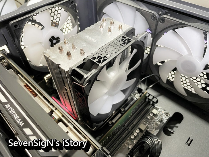 | 장착을 완료한 모습입니다. 방열판은 총 54겹으로 이루어져 있는데, 촘촘한 간격으로 효율적인 쿨링효과를 만들어내죠.