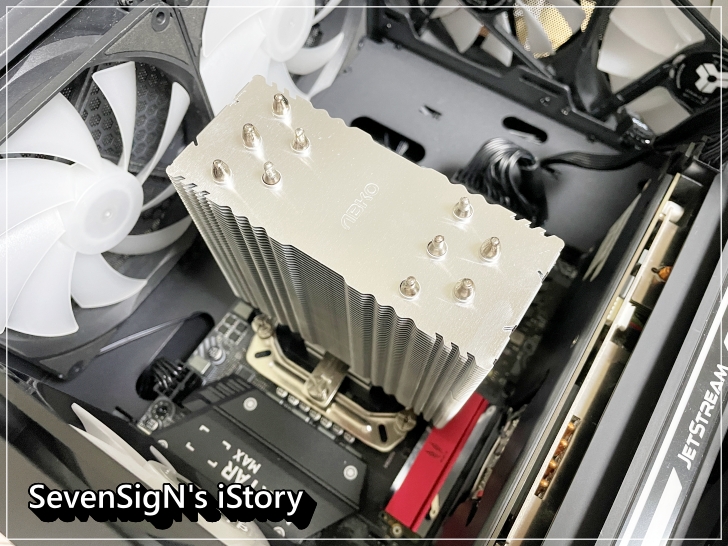 | 장착을 완료한 모습입니다. 방열판은 총 54겹으로 이루어져 있는데, 촘촘한 간격으로 효율적인 쿨링효과를 만들어내죠.