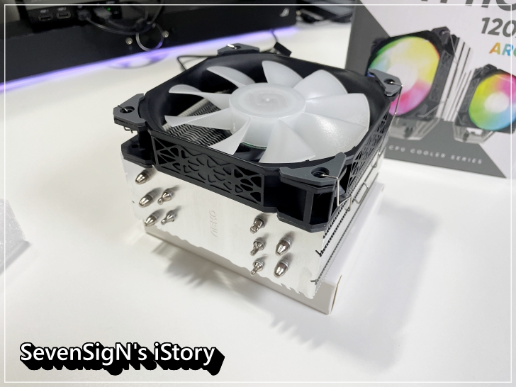 | 처음에 이야기한대로 알루미늄 베이스의 보호비닐을 제거합니다. 앱코 타이폰 120X5 ARGB의 히트파이프는 따닥따닥 붙어있는 밀집형의 DTH(Direct Touch Heat Pipes) 구조라 열전도율이 더욱 높다고 하네요.