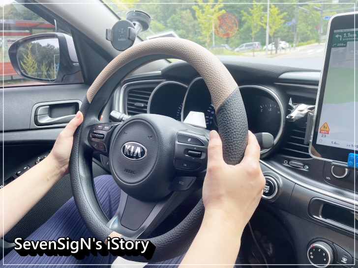 확실히 차량 핸들커버를 씌워야 그립감 때문에 안정감이 드는 것 같습니다.