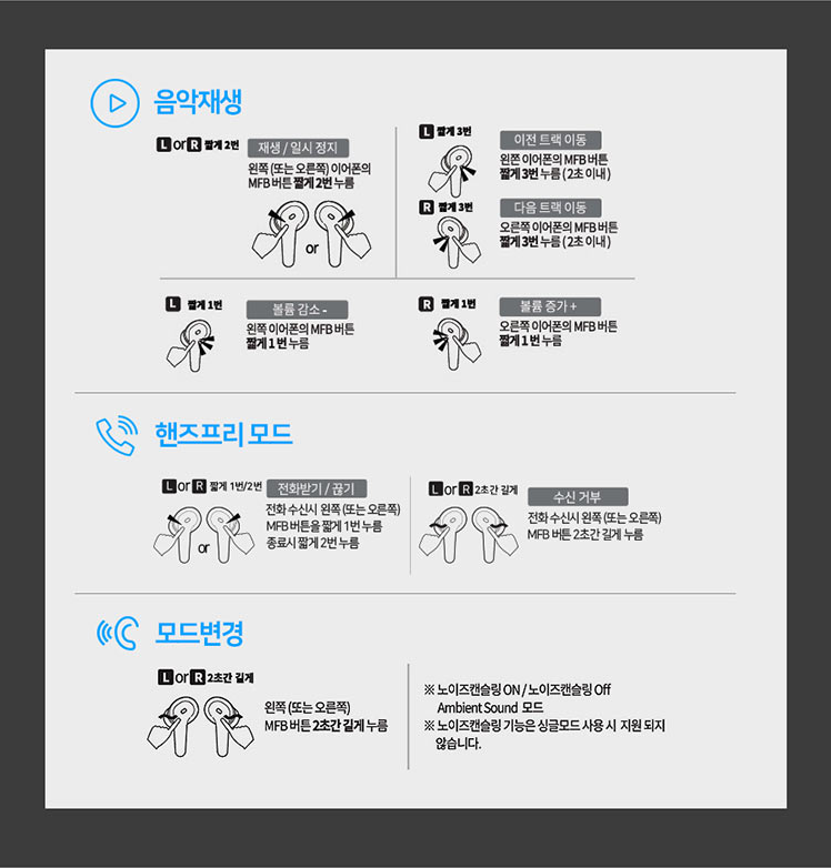 | Realpop ANC의 스마트버튼을 꾹 누르고 있으면 ANC ON이라고 음성이 나오면서 ANC가 활성화되는데, 차음성이 아주 뛰어나다고 하긴 어렵지만 귀에 들리는 소리에 좀 더 집중할 수 있는 환경이 되기 때문에 확실히 일반모드보다 사운드에 집중할 수 있습니다. 노이즈캔슬링을 비활성화하면 Ambient Sound 모드가 되면서 외부 소리도 자연스럽게 들을 수 있게 됩니다. 참고로 이어폰 한쪽만 장착시 ANC기능은 작동하지 않습니다.