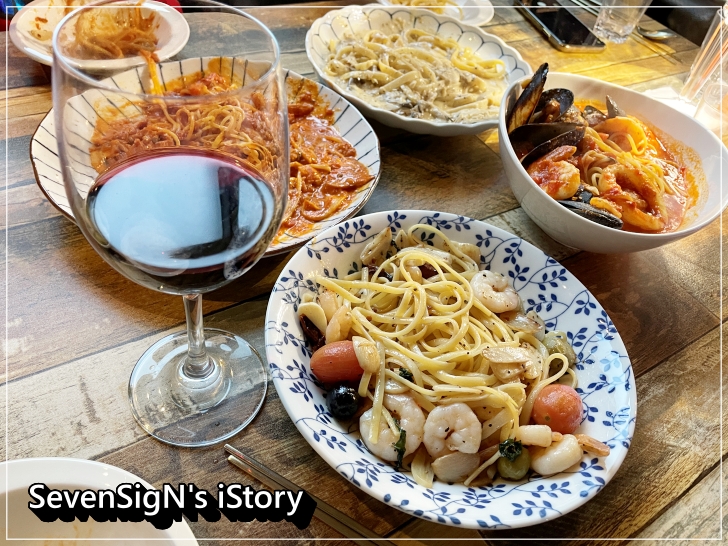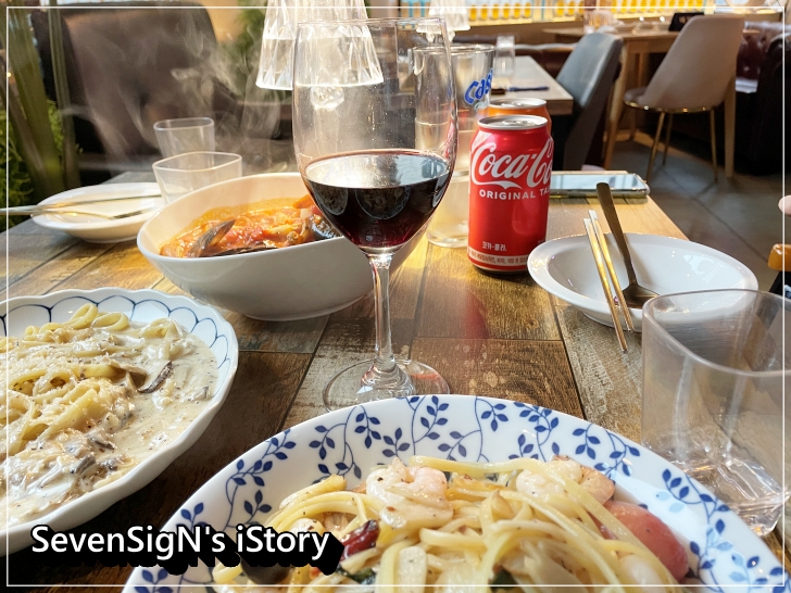 이것저것 구경하고 메뉴판 살펴보면서 와인과 함께 파스타 몇개 주문했네요.