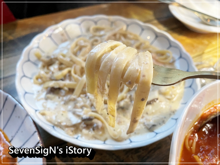 미끄러지는 듯한 느낌의 파스타면이지만 느끼하지 않고