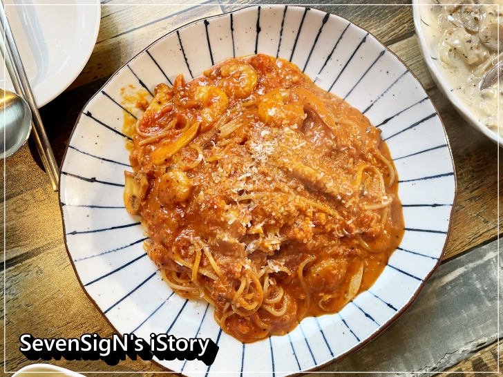 해산물도 푸짐해고 전체적으로 양이 푸짐한 파스타죠.