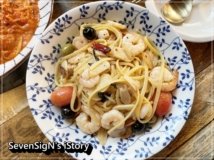 새우와 올리브, 마늘과 잘 어울러져 깊은 맛을 느낄 수 있는 파스타입니다.