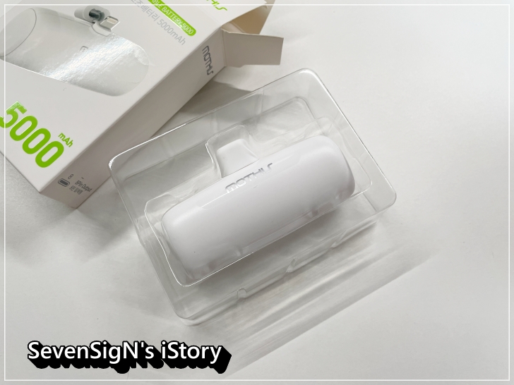 | 개봉하면 보조배터리 본체를 확인할 수 있습니다. 전 화이트 컬러로 선택했는데 아주 깔끔한 스타일을 보여주네요. 화이트외에 핑크와 민트 컬러도 있어서 원하는 컬러로 선택할 수 있습니다.