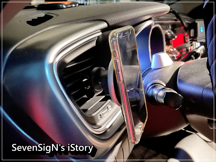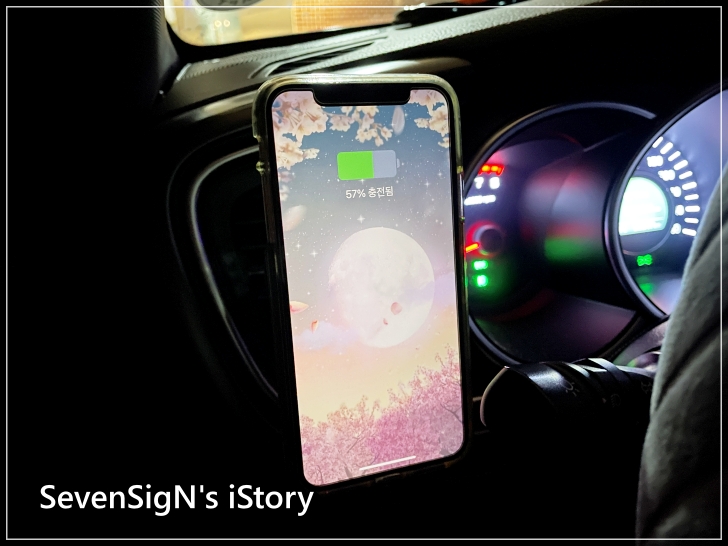 | 차량내에서 부착을 해보니 송풍구 거치대 자체도 단단하게 고정이 되고 슈퍼마그넷 무선 충전거치대에 아이폰도 안정적으로 거치되기 때문에 안심하고 사용할 수 있습니다. 충전 속도도 마음에 들고요.