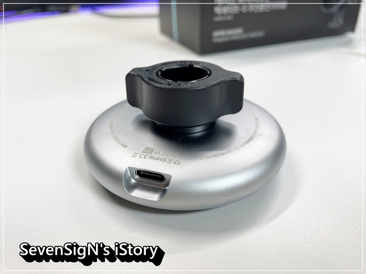 | 구성품으로는 본체 외에, 송풍구 거치대와 충전케이블, 그리고 설명서가 있습니다. 그리고 별도의 마그넷 링이 들어있는데 맥세이프를 지원하지는 않지만 무선충전을 지원하는 스마트폰에 사용할 수 있도록 하기 위한 아이템이죠