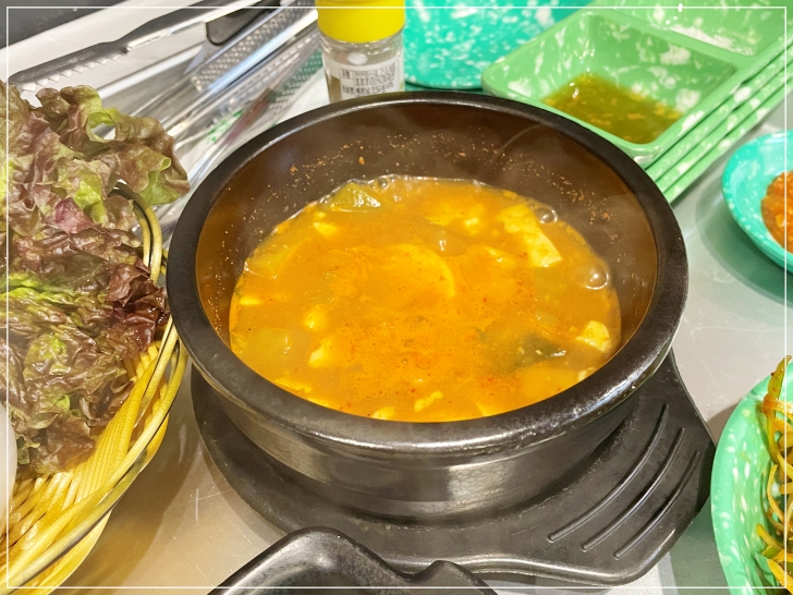뜨겁게 끓여진 순두부찌개가 나왔는데, 이게 또 맛이 끝내주네요 ㅋ