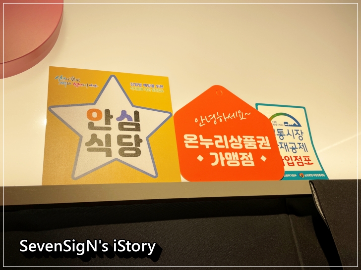 그리고 메뉴를 고르고 천천히 보는데 눈에 들어오는 안심되는 마크, 안심식당 ㅋ