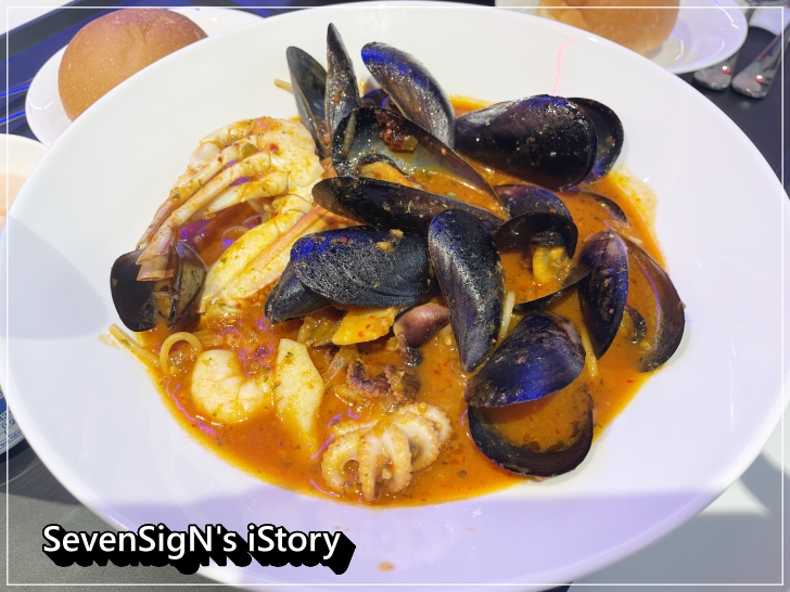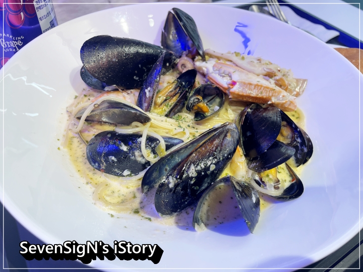 이태리 해산물 파스타짬뽕도 하얗지만 매콤한 느낌이 기분좋게 혀끝을 자극했고