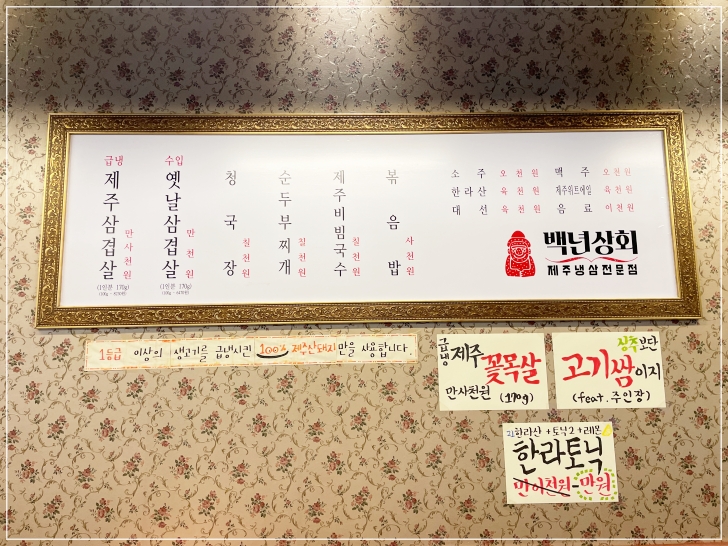 제주삼겹살과 옛날삼겹살이 메인인 삼겹살 맛집이죠.