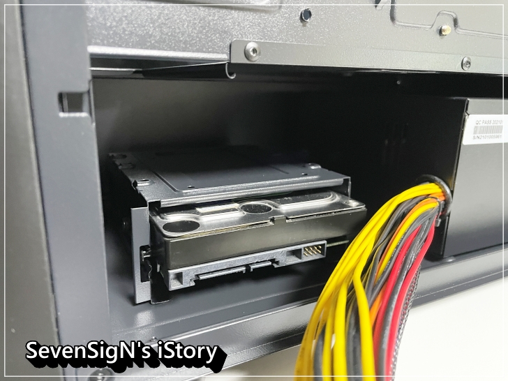 | SATA 방식의 SSD는 케이스 안쪽에 위 아래로 1개씩 모두 2개를 장착할 수 있습니다. SSD 한쪽 측면 2개의 구멍을 케이스에 고정시키고 나사를 이용해 장착하는 방식입니다.