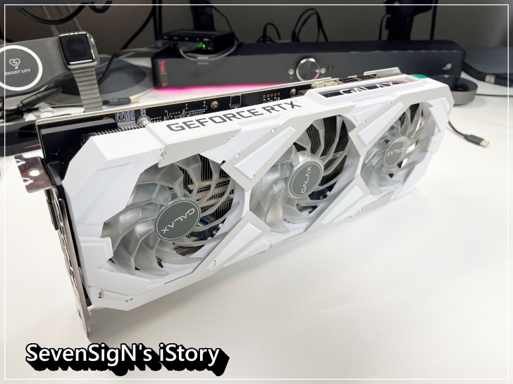 | 이젠 정착하려고 영입한 광부 출신 갤럭기 GALAX RTX3070 3팬 화이트 모델입니다. 기존 AMD rx6600xt에서 잠시 갤럭시 화이트 2팬짜리 RTX3060으로 넘어왔었는데, RTX3070 까진 가보자는 생각에 화이트 컬러의 3팬짜리로 넘어오게 되었습니다.