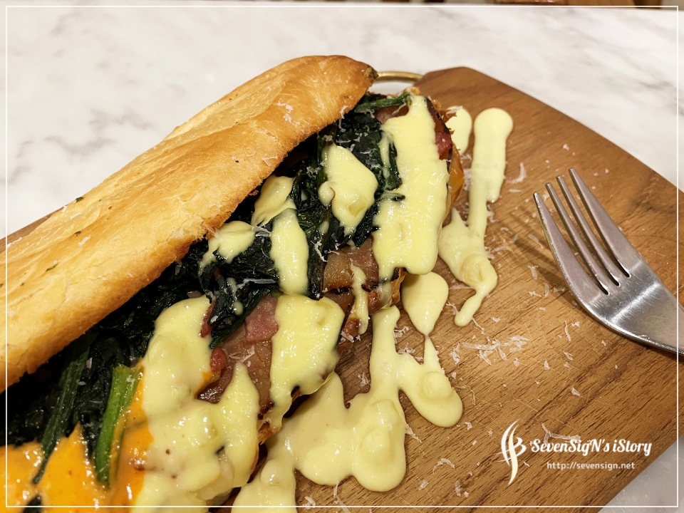 양쪽 비주얼이 다른 만큼 맛도 2가지로 느낄 수 있는 뽀빠이 샌드위치가 정말 기대되더군요.