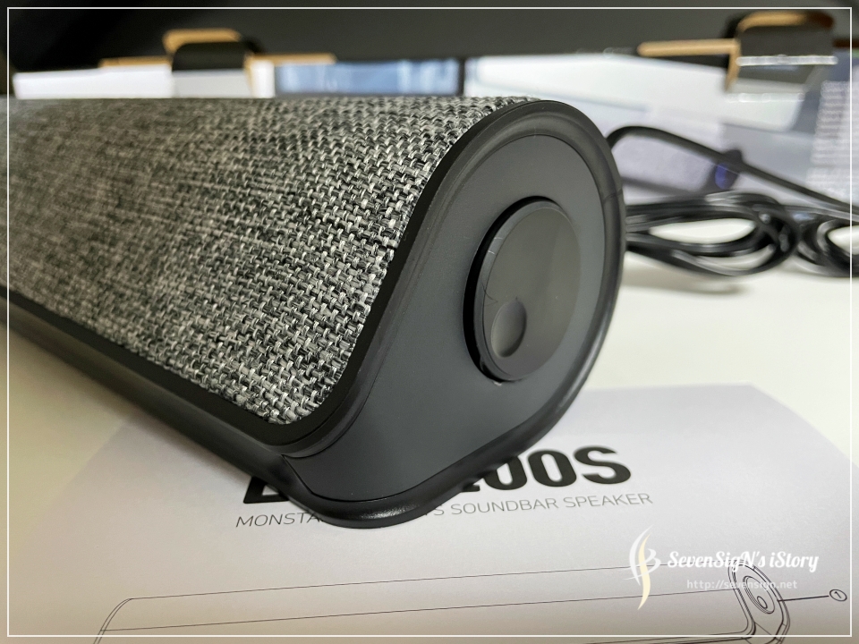 | 몬스타기어 PC사운드바 가츠라이브 200S 전원 및 볼륨조절 버튼은 스피커 우측면에 위치해 있습니다. 다이얼 방식의 버튼으로 볼륨인 동시에 전원 역할 및 블루투스와 AUX 모드 전환 버튼으로도 사용됩니다. 가츠라이브200S 스피커의 측면 버튼을 누르고 있으면 전원이 켜지고, 다시 누르고 있으면 전원이 꺼지게 됩니다. 볼륨조절은 예상하듯이 돌리면 되구요. 한번 짧게 누르면 누를때마다 블루투스와 AUX모드가 서로 전환됩니다.