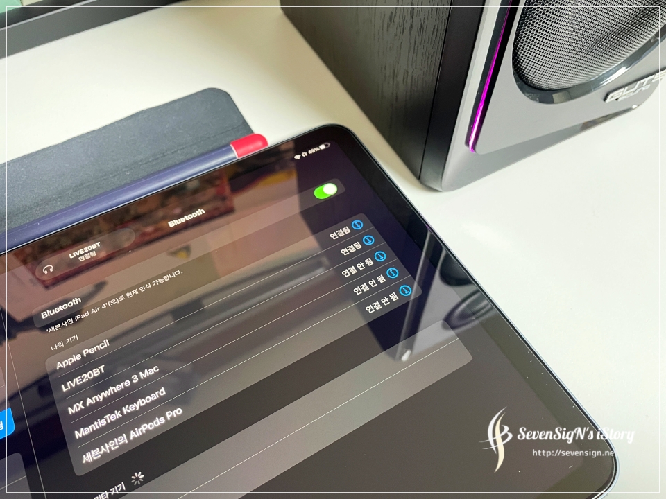 | 블루투스에 AUX 모드로 바꾸면서 바로 재생되는 소리가 바뀌는 것도 확인할 수 있습니다. 아이패드와 컴퓨터의 기본 음량이 다르다보니 크기차이가 있는데, 이건 사용자가 쓰면서 맞춰야할 일이죠 ㅎ
