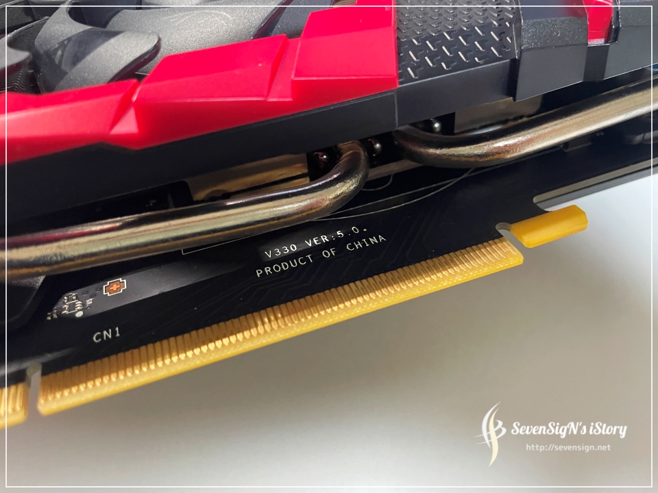 | 측면 모습입니다. MSI로고가 있고, 팬이 있는 정면을 봤을 때 빨갛게 가장자리에 있던 부분이 옆에서 보면 드문드문 보이는데 저 부분도 LED 불이 들어오더라구요.
