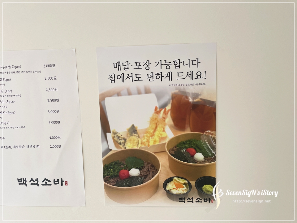 백석소바도 배달 포장 되니까 지나는 길이라면 언제든 편하게 들러도 좋고, 주문을 하면 되겠네요.