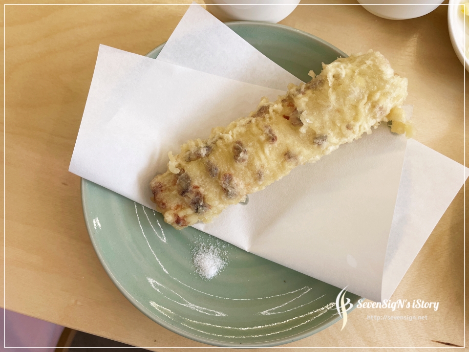 더 바삭하고 고소하게 맛볼 수 있죠. 살짝 담아주신 소금에 찍어먹으면 더 맛있더라구요.