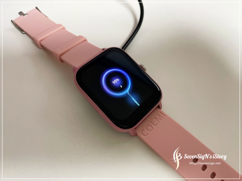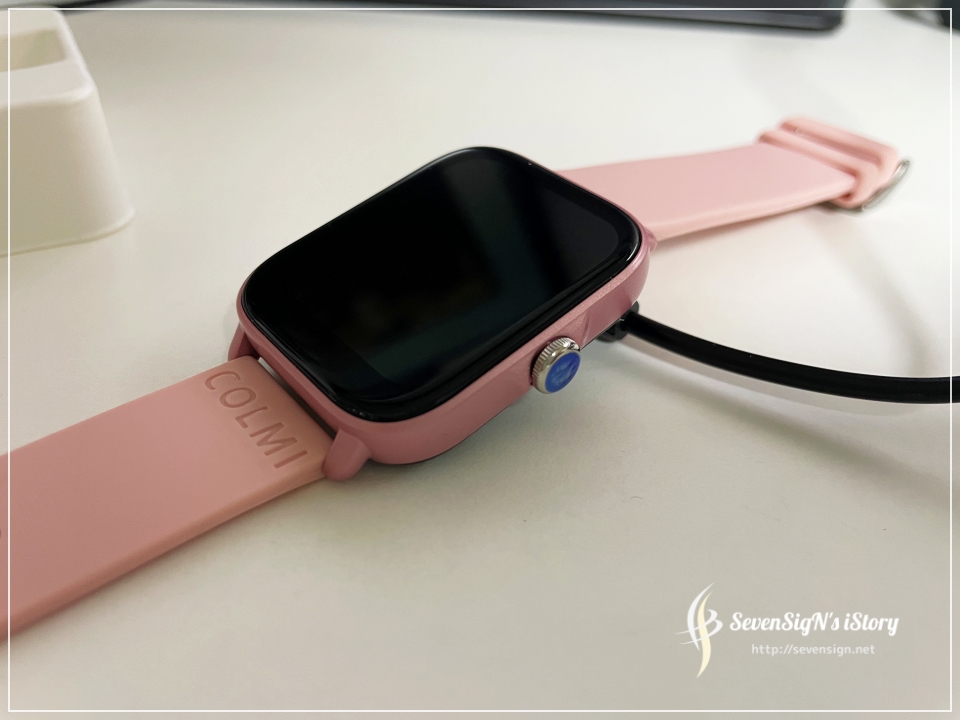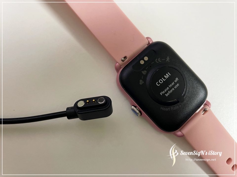 | COLMI 워치는 전용 충전케이블을 사용합니다. 자석이 있어서 착 달라붙는데요, 범용적인 케이블을 사용하지 않는 건 좀 아쉬운 부분입니다. 잃어버리면 이 케이블을 어떻게 구해야하나 싶더라구요 ㅋ