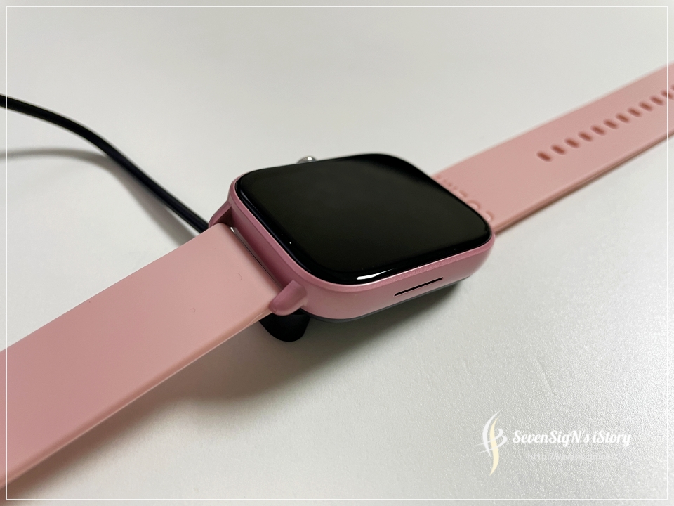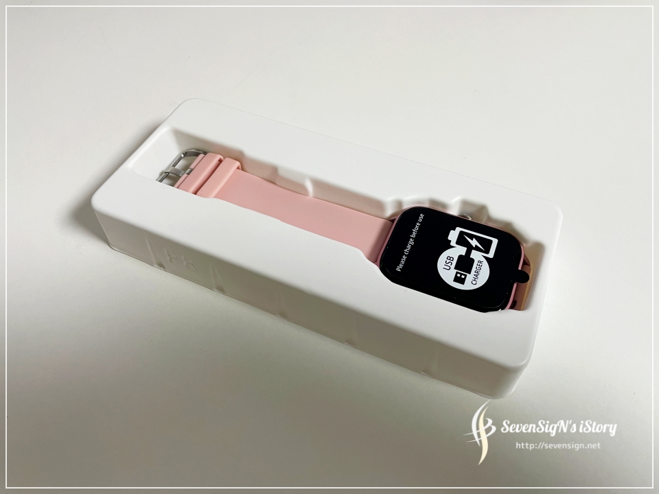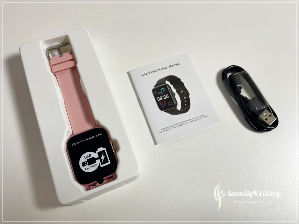 | 아이가 컬러를 핑크로 골랐는데, 개봉하니 핑크스트랩과 사용설명서 충전케이블이 포함되어 있습니다.