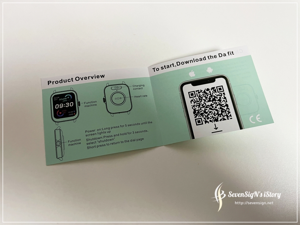 | 설명서 안에 있는 QR코드를 찍어서 Da fit 앱을 다운로드합니다. COLMI P28 Plus 는 블루투스 5.1 버전, 심박동 센서, 수면 관리 기능 등이 있고 음성비서와 와이파이 기능은 탑재되어 있진 않습니다. 아이들에게는 뭐 크게 상관없는 기능들이죠.