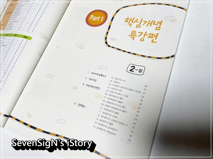2-상에서는 유리수와 순환소수, 식의계산, 부등식과 방정식, 일차함수에 대해서 공부합니다.