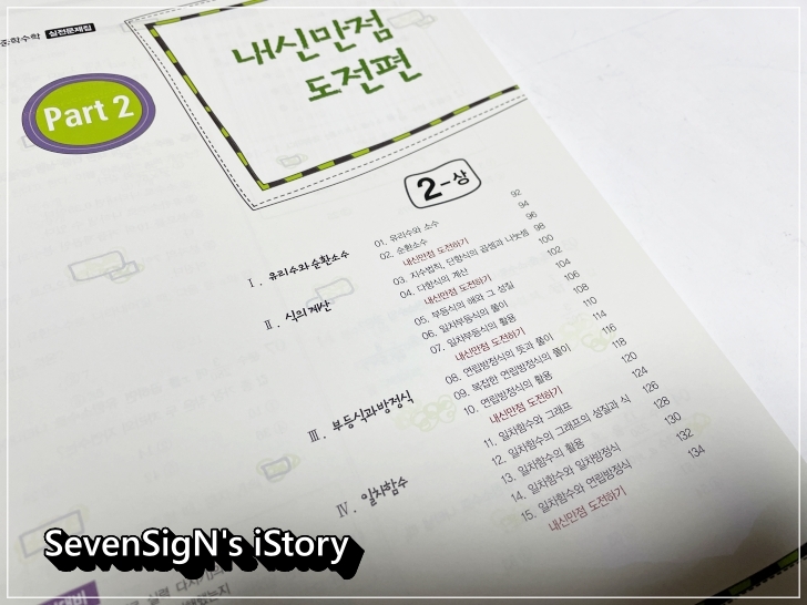 Part 1 핵심개념 특강편과 Part 2 내신만점 도전편으로 구성이 되는데