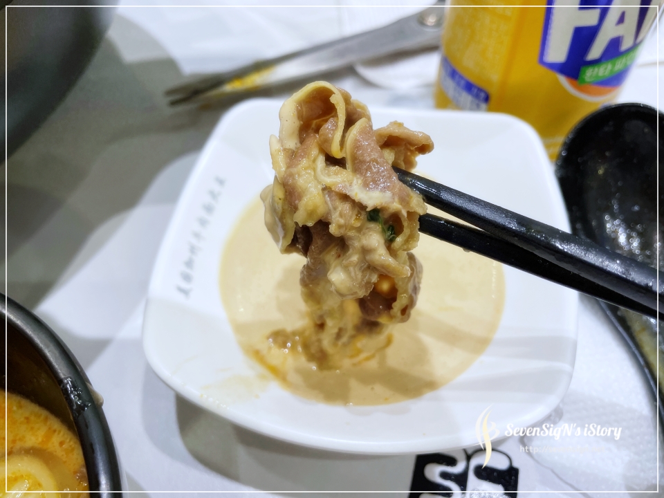 국물에 찍어먹으니까 마라맛이 적셔져서 또 다른 맛이었어요~