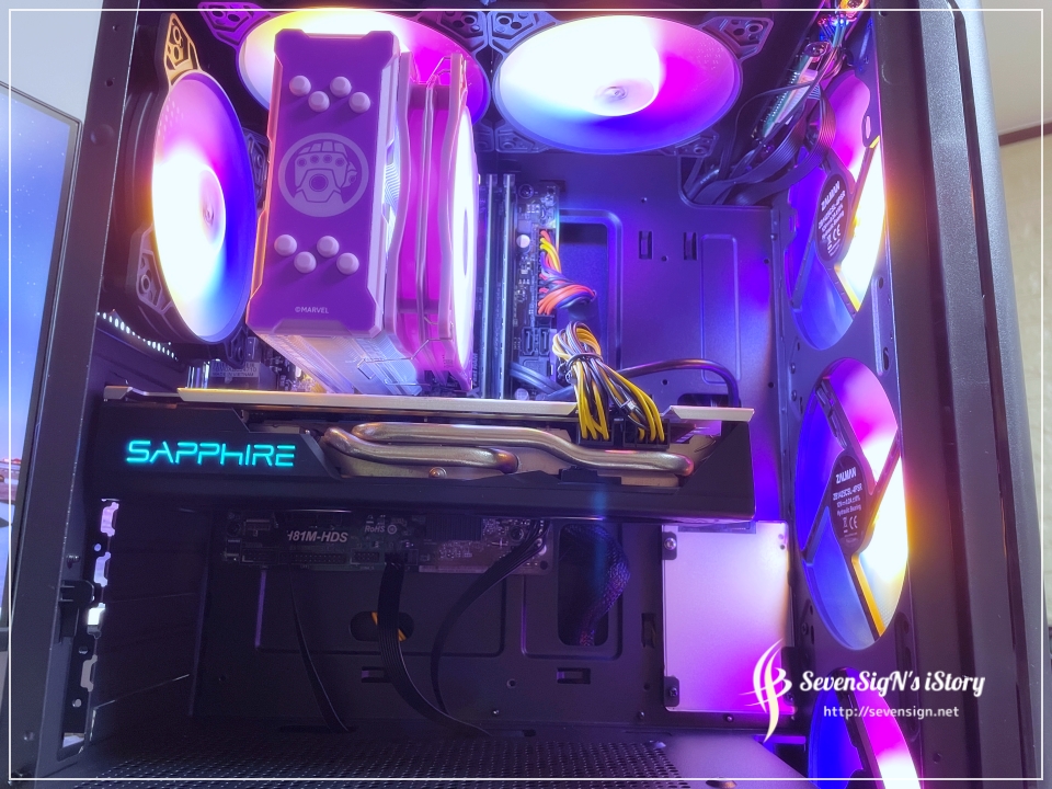 | 상단에 장착된 팬까지 LED를 뿜어주니 쿨링과 함께 멋진 효과를 함께 감상할 수 있어 좋은 케이스입니다.