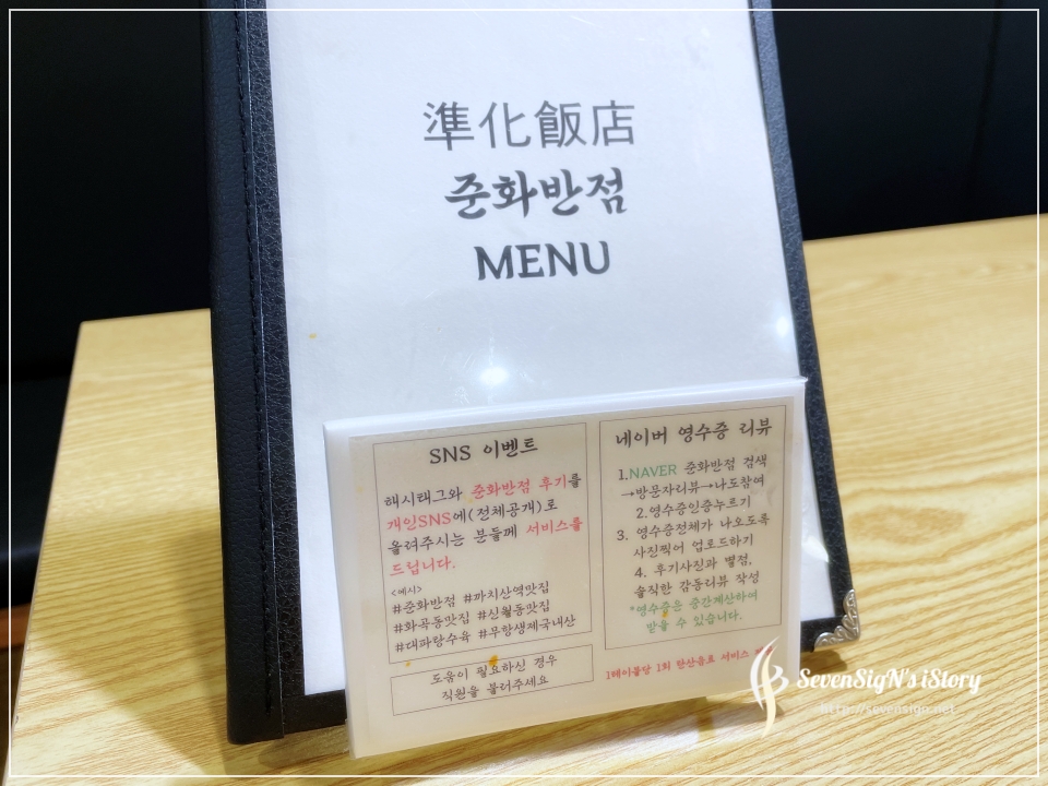 요즘 준화반점에서는 후기 SNS이벤트랑 네이버 영수증 리뷰이벤트도 하고 있어서