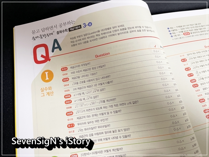 숨마쿰라우데 중학수학 개념기본서의 가장 핵심적인 내용 구성이 바로 Q/A 페이지인 것 같더라구요.